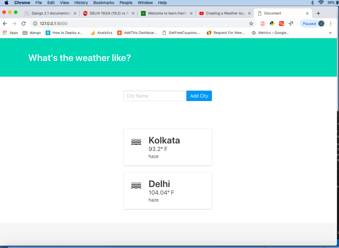 This is basic weather app which i have completed with Django.it created with a weather api.you can get the its weather api key on openweatherapp.org.