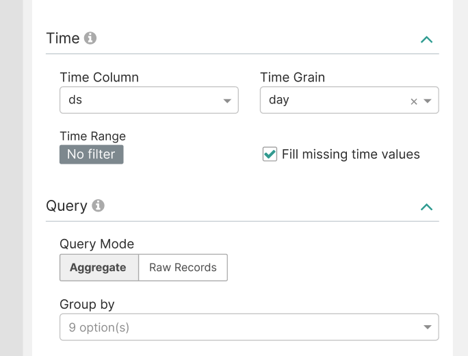 Missing data was once a pain for Big Number with Trendline, too. I I did something similar but different to fix: apache/superset#9341 For my case, I didn't have to fill missing dates in between available records because they already look like zeros in the viz, but had to also added forward fill just for the last timestamp. I agree it would be very helpful to have data imputation based on time grains. Coming to think of it, I feel maybe we can just make this checkbox + fill method select part of the "Time" control section so to enable it for any timeseries chart: Users may also choose to configure fill methods for each metric separately in AdhocMetricsControl or another control. |
