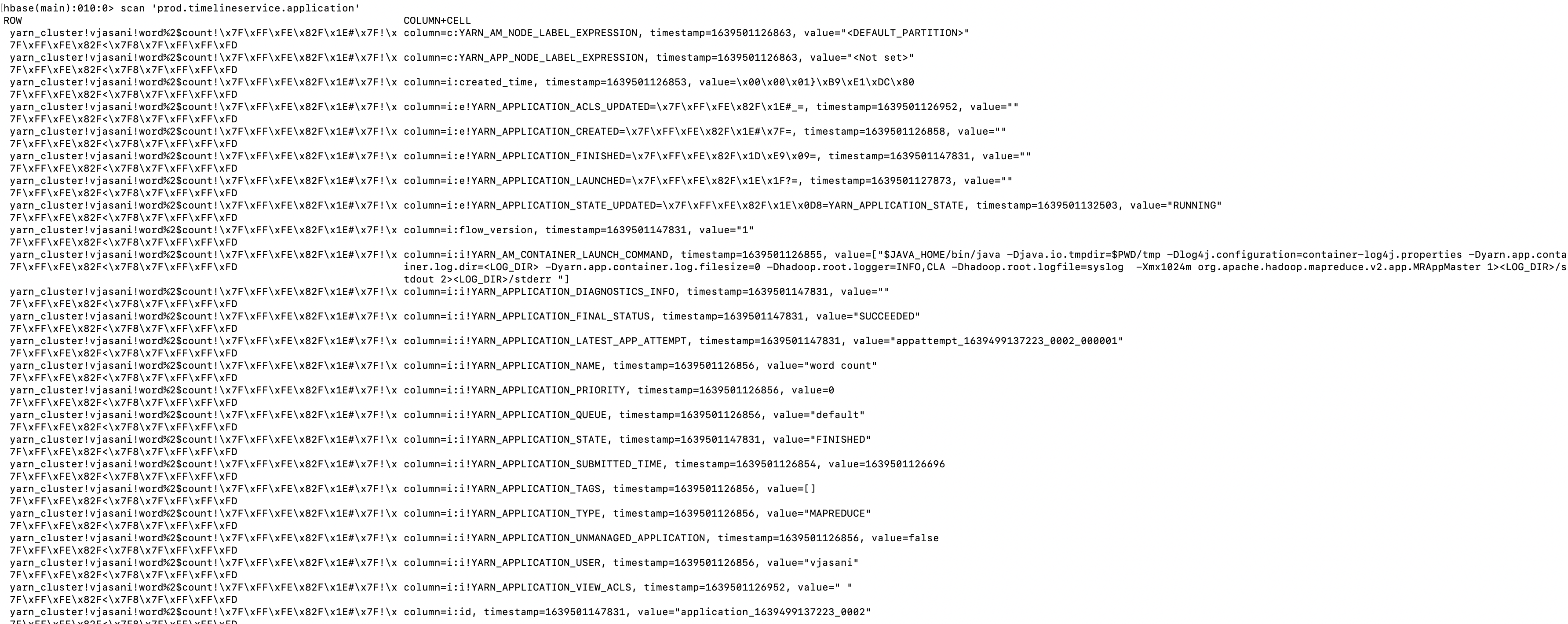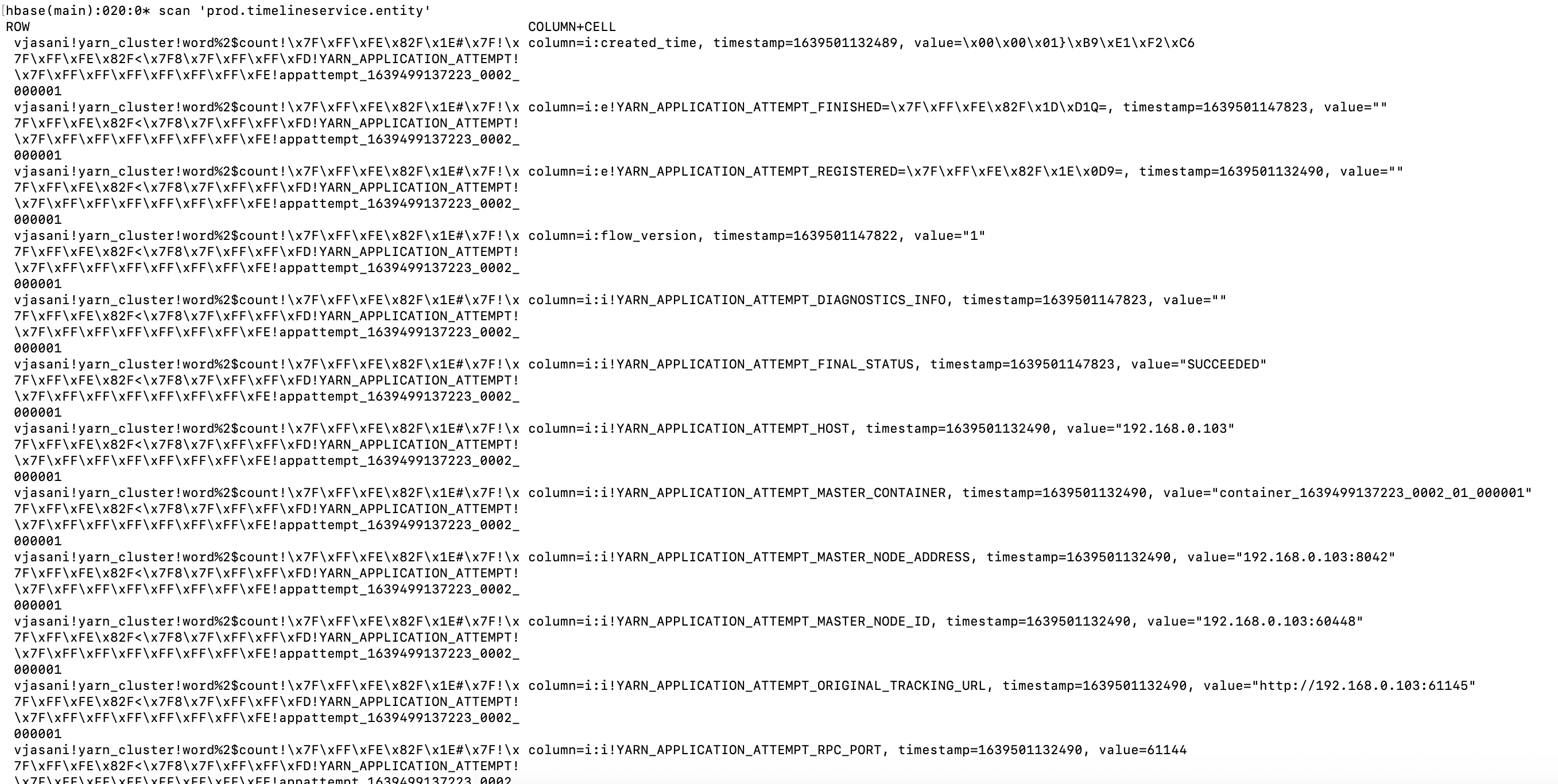 Data is also flowing from Yarn to HBase tables:
