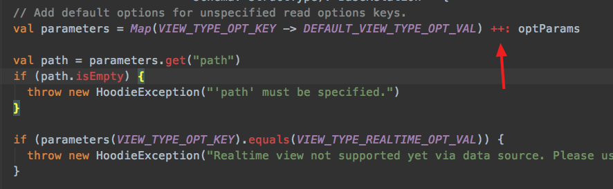 | val parameters = Map(VIEW_TYPE_OPT_KEY -> DEFAULT_VIEW_TYPE_OPT_VAL) ++ optParams |