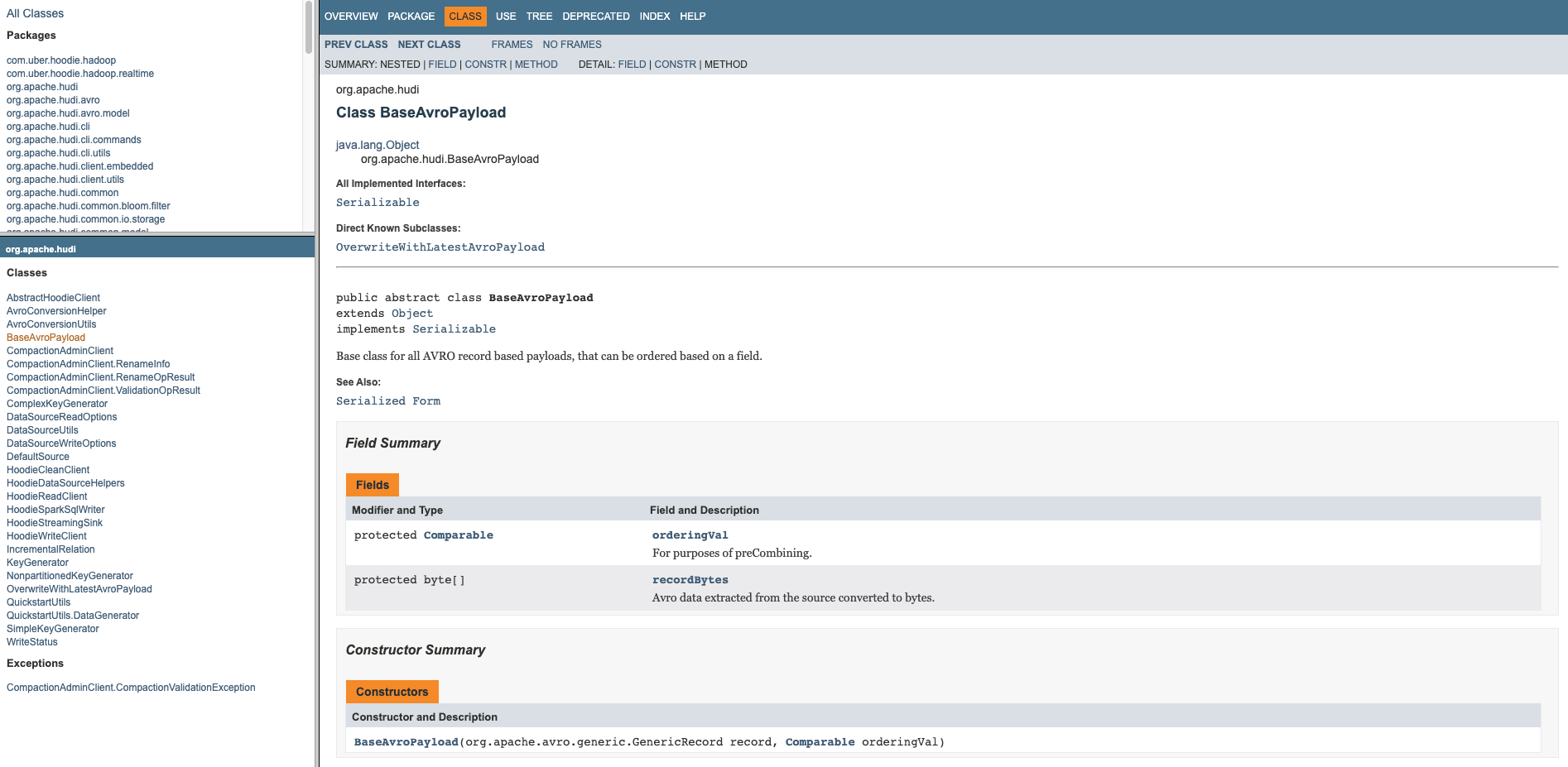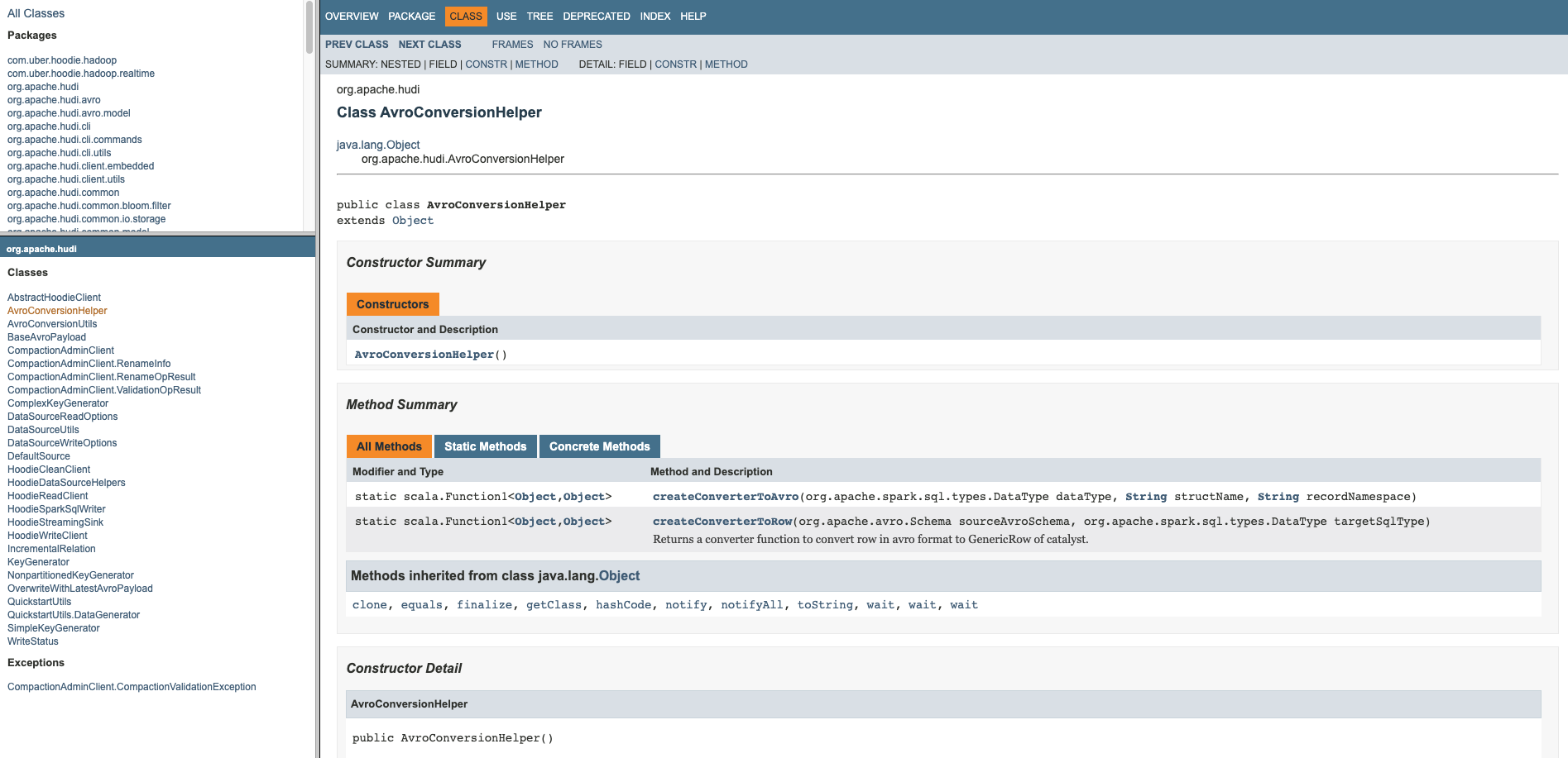 hudi-sparkandhudi-cli, have Scala source code (only a few files), it is better to put the apidocs of all classes in one place.Since most classes are in Java, the Javadoc is chosen to generate the apidocs, with genjavadoc-plugin to translate Scaladoc comments into Java source so that the