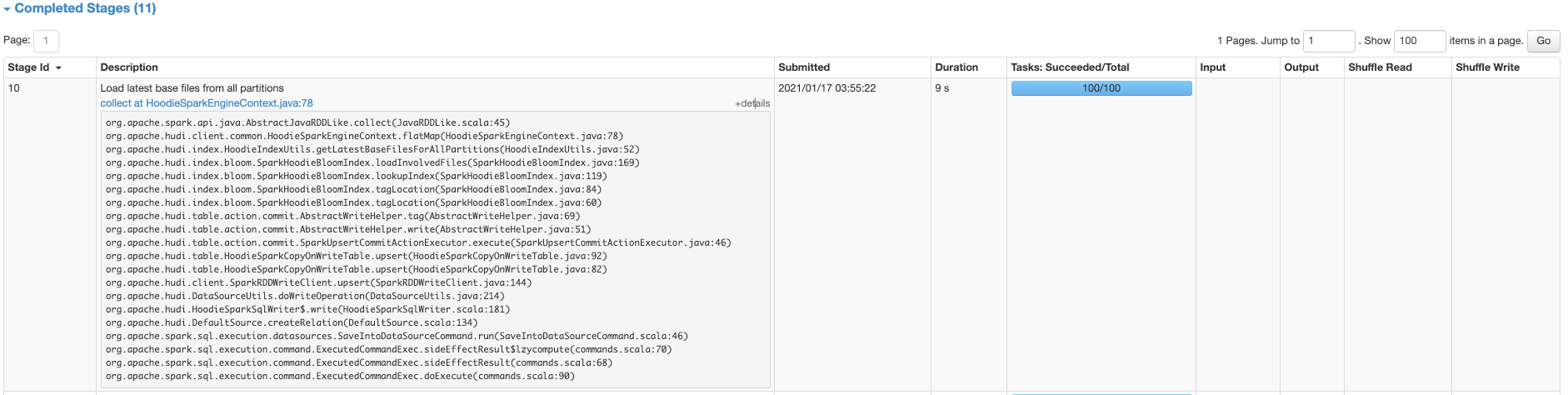 …OSS master Summary: [HUDI-1509]: Reverting LinkedHashSet changes to combine fields from oldSchema and newSchema in favor of using only new schema for record rewriting (apache#2424) [MINOR] Bumping snapshot version to 0.7.0 (apache#2435) [HUDI-1533] Make SerializableSchema work for large schemas and add ability to sortBy numeric values (apache#2453) [HUDI-1529] Add block size to the FileStatus objects returned from metadata table to avoid too many file splits (apache#2451) [HUDI-1532] Fixed suboptimal implementation of a magic sequence search (apache#2440) [HUDI-1535] Fix 0.7.0 snapshot (apache#2456) [MINOR] Fixing setting defaults for index config (apache#2457) [HUDI-1540] Fixing commons codec shading in spark bundle (apache#2460) [HUDI 1308] Harden RFC-15 Implementation based on production testing (apache#2441) [MINOR] Remove redundant judgments (apache#2466) [MINOR] Fix dataSource cannot use hoodie.datasource.hive_sync.auto_create_database (apache#2444) [MINOR] Disabling problematic tests temporarily to stabilize CI (apache#2468) [MINOR] Make a separate travis CI job for hudi-utilities (apache#2469) [HUDI-1512] Fix spark 2 unit tests failure with Spark 3 (apache#2412) [HUDI-1511] InstantGenerateOperator support multiple parallelism (apache#2434) [HUDI-1332] Introduce FlinkHoodieBloomIndex to hudi-flink-client (apache#2375) [HUDI] Add bloom index for hudi-flink-client [MINOR] Remove InstantGeneratorOperator parallelism limit in HoodieFlinkStreamer and update docs (apache#2471) [MINOR] Improve code readability,remove the continue keyword (apache#2459) [HOTFIX] Revert upgrade flink verison to 1.12.0 (apache#2473) [HUDI-1453] Fix NPE using HoodieFlinkStreamer to etl data from kafka to hudi (apache#2474) [MINOR] Use skipTests flag for skip.hudi-spark2.unit.tests property (apache#2477) [HUDI-1476] Introduce unit test infra for java client (apache#2478) [MINOR] Update doap with 0.7.0 release (apache#2491) [MINOR]Fix NPE when using HoodieFlinkStreamer with multi parallelism (apache#2492) [HUDI-1234] Insert new records to data files without merging for "Insert" operation. (apache#2111) [MINOR] Add Jira URL and Mailing List (apache#2404) [HUDI-1522] Add a new pipeline for Flink writer (apache#2430) [HUDI-1522] Add a new pipeline for Flink writer [HUDI-623] Remove UpgradePayloadFromUberToApache (apache#2455) [HUDI-1555] Remove isEmpty to improve clustering execution performance (apache#2502) [HUDI-1266] Add unit test for validating replacecommit rollback (apache#2418) [MINOR] Quickstart.generateUpdates method add check (apache#2505) [HUDI-1519] Improve minKey/maxKey computation in HoodieHFileWriter (apache#2427) [HUDI-1550] Honor ordering field for MOR Spark datasource reader (apache#2497) [MINOR] Fix method comment typo (apache#2518) [MINOR] Rename FileSystemViewHandler to RequestHandler and corrected the class comment (apache#2458) [HUDI-1335] Introduce FlinkHoodieSimpleIndex to hudi-flink-client (apache#2271) [HUDI-1523] Call mkdir(partition) only if not exists (apache#2501) [HUDI-1538] Try to init class trying different signatures instead of checking its name (apache#2476) [HUDI-1538] Try to init class trying different signatures instead of checking its name. [HUDI-1547] CI intermittent failure: TestJsonStringToHoodieRecordMapF… (apache#2521) [MINOR] Fixing the default value for source ordering field for payload config (apache#2516) [HUDI-1420] HoodieTableMetaClient.getMarkerFolderPath works incorrectly on windows client with hdfs server for wrong file seperator (apache#2526) [HUDI-1571] Adding commit_show_records_info to display record sizes for commit (apache#2514) [HUDI-1589] Fix Rollback Metadata AVRO backwards incompatiblity (apache#2543) [MINOR] Fix wrong logic for checking state condition (apache#2524) [HUDI-1557] Make Flink write pipeline write task scalable (apache#2506) [HUDI-1545] Add test cases for INSERT_OVERWRITE Operation (apache#2483) [HUDI-1603] fix DefaultHoodieRecordPayload serialization failure (apache#2556) [MINOR] Fix the wrong comment for HoodieJavaWriteClientExample (apache#2559) [HUDI-1526] Translate the api partitionBy in spark datasource to hoodie.datasource.write.partitionpath.field (apache#2431) [HUDI-1612] Fix write test flakiness in StreamWriteITCase (apache#2567) [HUDI-1612] Fix write test flakiness in StreamWriteITCase [MINOR] Default to empty list for unset datadog tags property (apache#2574) [MINOR] Add clustering to feature list (apache#2568) [HUDI-1598] Write as minor batches during one checkpoint interval for the new writer (apache#2553) [HUDI-1109] Support Spark Structured Streaming read from Hudi table (apache#2485) [HUDI-1621] Gets the parallelism from context when init StreamWriteOperatorCoordinator (apache#2579) [HUDI-1381] Schedule compaction based on time elapsed (apache#2260) [HUDI-1582] Throw an exception when syncHoodieTable() fails, with RuntimeException (apache#2536) [HUDI-1539] Fix bug in HoodieCombineRealtimeRecordReader with reading empty iterators (apache#2583) [HUDI-1315] Adding builder for HoodieTableMetaClient initialization (apache#2534) [HUDI-1486] Remove inline inflight rollback in hoodie writer (apache#2359) [HUDI-1586] [Common Core] [Flink Integration] Reduce the coupling of hadoop. (apache#2540) [HUDI-1624] The state based index should bootstrap from existing base files (apache#2581) [HUDI-1477] Support copyOnWriteTable in java client (apache#2382) [MINOR] Ensure directory exists before listing all marker files. (apache#2594) [MINOR] hive sync checks for table after creating db if auto create is true (apache#2591) [HUDI-1620] Add azure pipelines configs (apache#2582) [HUDI-1347] Fix Hbase index to make rollback synchronous (via config) (apache#2188) [HUDI-1637] Avoid to rename for bucket update when there is only one flush action during a checkpoint (apache#2599) [HUDI-1638] Some improvements to BucketAssignFunction (apache#2600) [HUDI-1367] Make deltaStreamer transition from dfsSouce to kafkasouce (apache#2227) [HUDI-1269] M