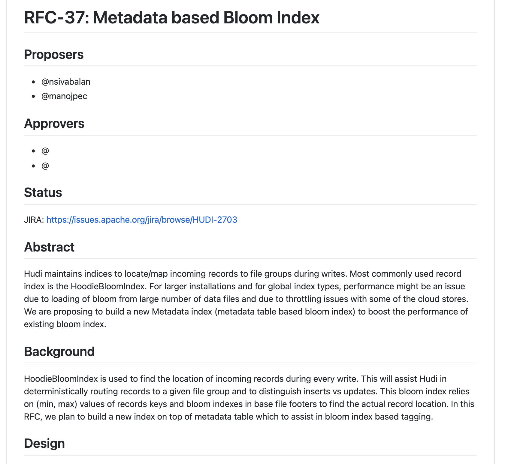 Adding an RFC for metadata based bloom index.