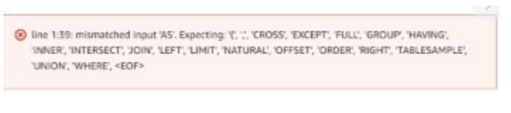Also please note that this error is not from a spark environment, but from AwsAthena, which uses prestodb as a engine. There is any additional setup? |