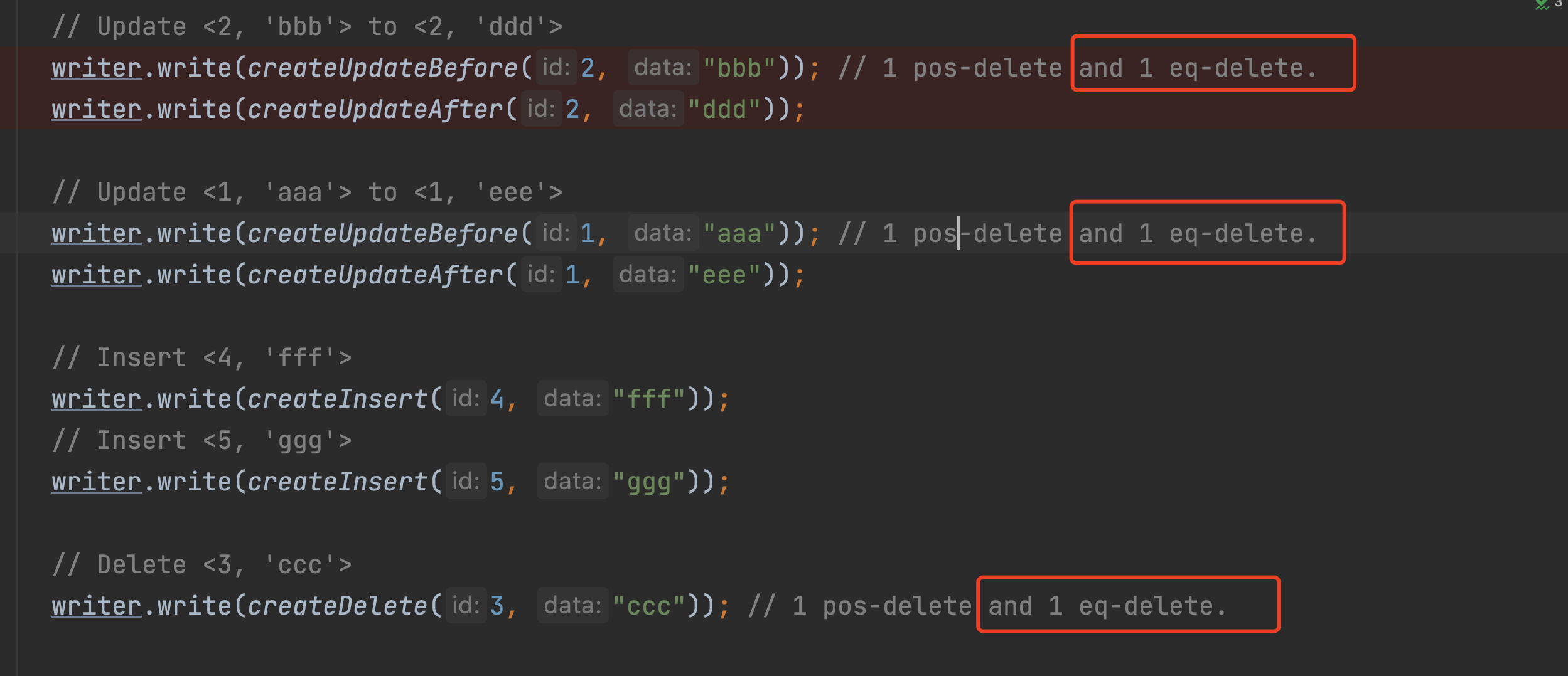 | eqDeleteWriter.write(row); | ||