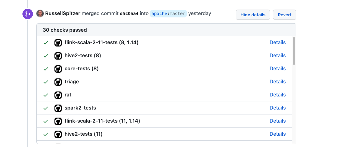 @aokolnychyi looks like the expected tmp staging file that gets created disappeared, this failure occurs before the mock gets invoked. Wondering what could be different in the test environment, the test works fine when ran locally both from cli and IDE. Do we run unit tests as part of the PR checks before its merged? wanted to check if this test passed in that build. |