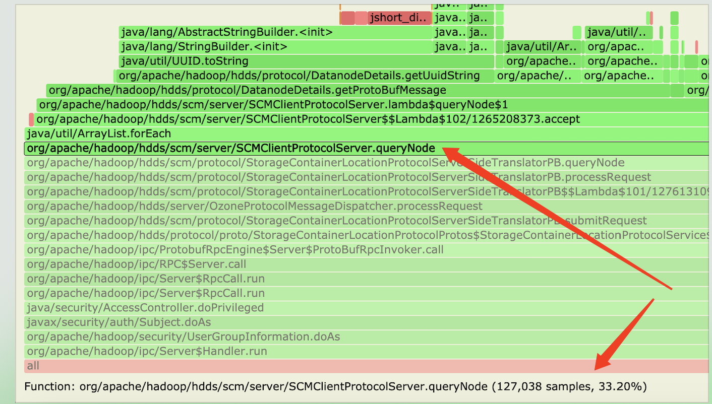 2.From scm perf, queryNode come from om::getServiceList cost 33.20% cpu