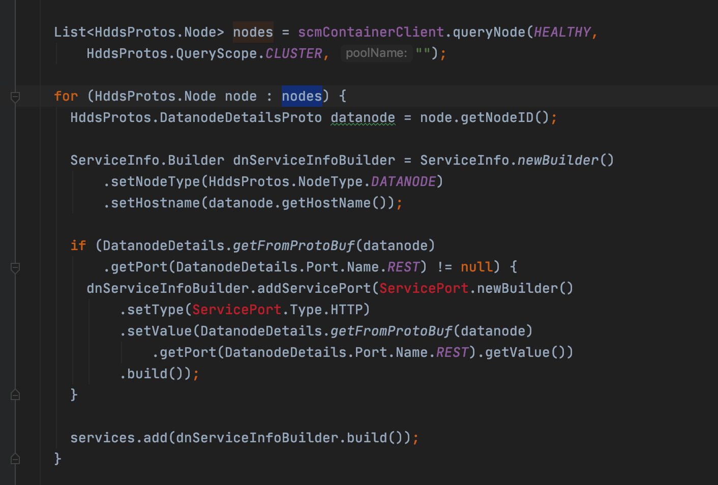 RpcClient, s3g will callozoneManagerClient.getServiceInfo(),getServiceInfowill callgetServiceList.getServiceListis a very heavy call, because it need to get DatanodeDetails of 1000 Datanodes, so om and scm are very busy withgetServiceList.But s3g does not use the List(ServiceInfo) which got from