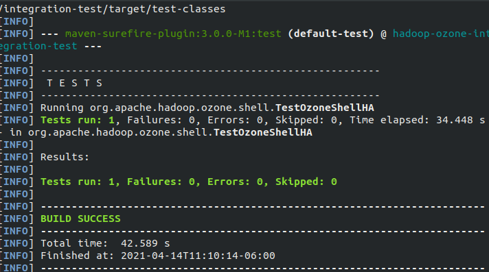 Tests run: 1, Failures: 0, Errors: 0, Skipped: 0, Time elapsed: 28.099 s - in org.apache.hadoop.ozone.shell.TestOzoneShellHA