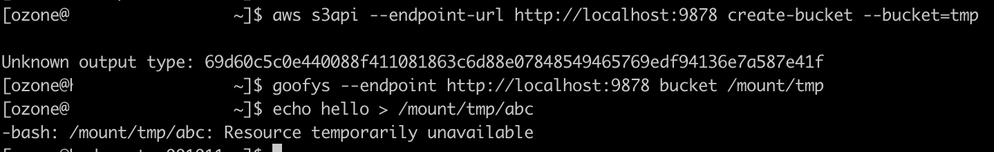 File 'abc' in bucket tmp is not created.