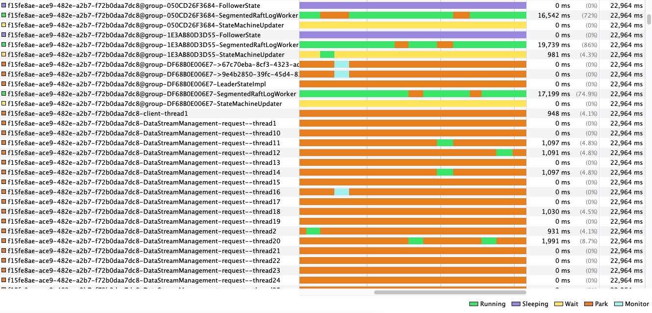 @captainzmc , I tried running some single client benchmarks. However, the ASYNC performance is better than STREAM Found that we have not called RaftServerConfigKeys.DataStream.setAsyncWriteThreadPoolSize. I temporarily have the following change: |