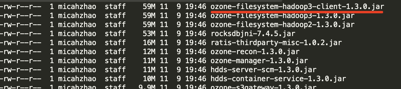 That wouldn't help, as they are already a part of the hadoop jars that these ozone jars are designed to complement: hadoop-client-api-3.3.1.jar and hadoop-common-3.3.4.jar |