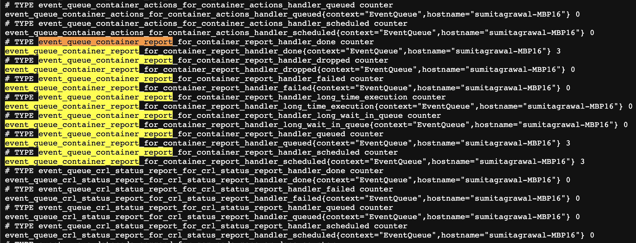 Event queue metrics reported: