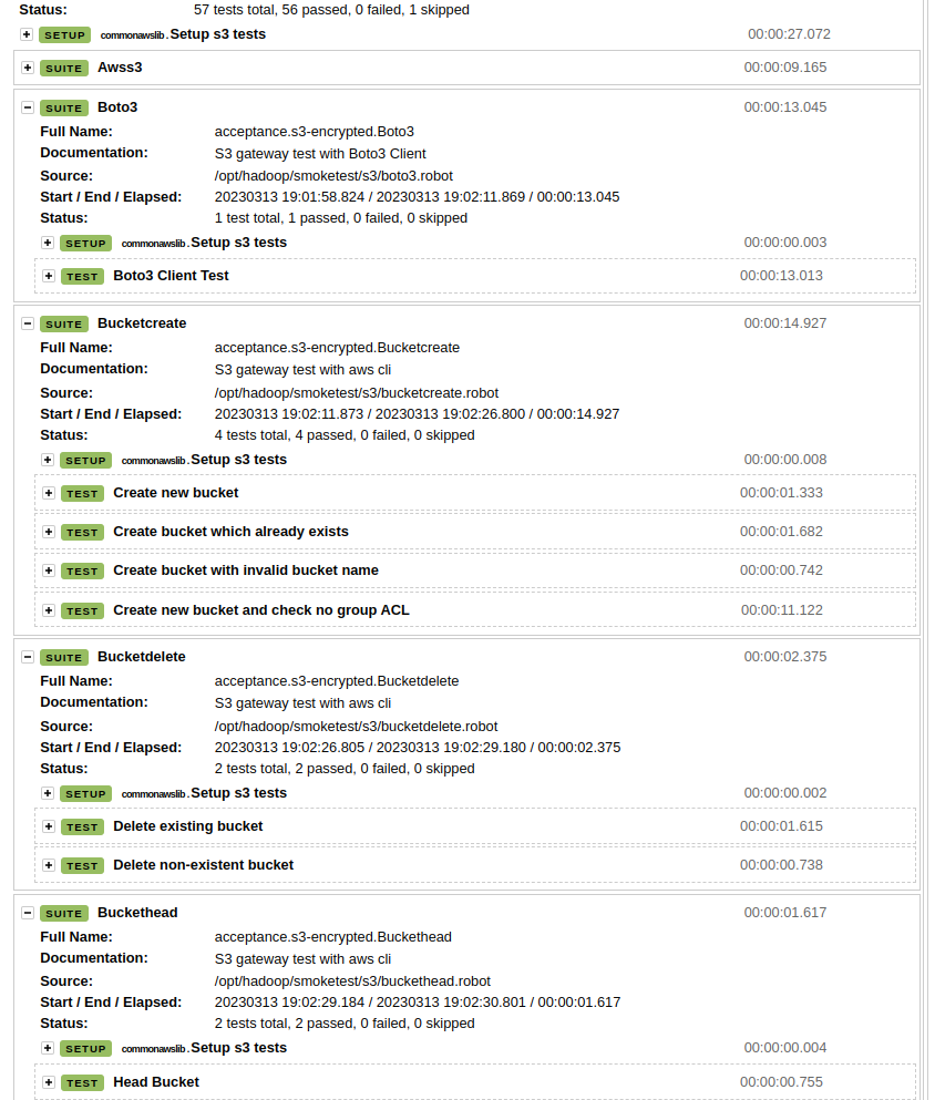 Compare time elapsed in "Setup S3 tests", the first step in each S3 test: