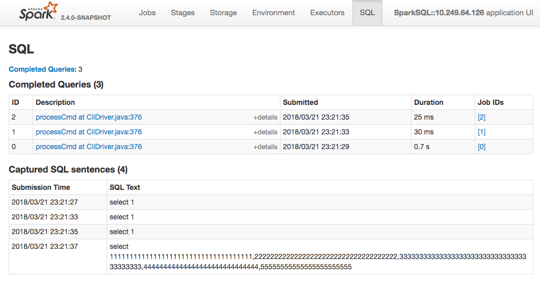 In eBay, most spark applications like ETL using spark-submit to schedule their jobs with a few sql files. The sql statement in those applications cannot be saw in current spark UI. Even we get the sql files, there are many variables in the it such as "select * from ${workingBD}.table where data_col=${TODAY}". So this