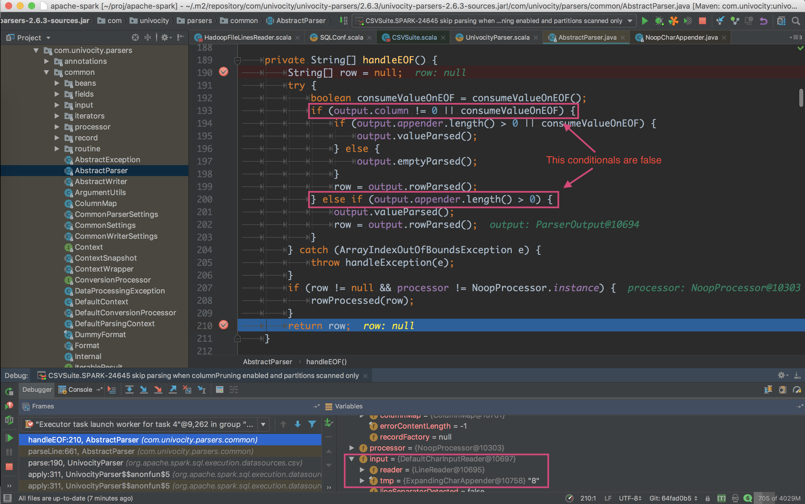 So you mean it's a bug in Univocity? that's another fix for a bug existing in Univocity then. We could work around this bug if it's clear that's a bug. I would suggest to open a bug there if we are not sure in any event. FWIW, their support is quite responsive when the issue is reported with a clear reproducer and descriptions. this issue sounds slightly orthogonal to the JIRA itself though. |