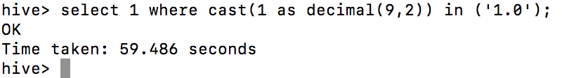| struct<(CAST(CAST(1 AS TINYINT) AS STRING) IN (CAST(CAST(1 AS STRING) AS STRING))):boolean> | ||