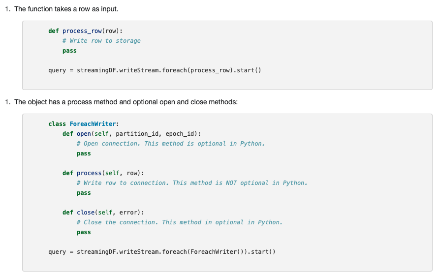 | Internally, by default, Structured Streaming queries are processed using a *micro-batch processing* engine, which processes data streams as a series of small batch jobs thereby achieving end-to-end latencies as low as 100 milliseconds and exactly-once fault-tolerance guarantees. However, since Spark 2.3, we have introduced a new low-latency processing mode called **Continuous Processing**, which can achieve end-to-end latencies as low as 1 millisecond with at-least-once guarantees. Without changing the Dataset/DataFrame operations in your queries, you will be able to choose the mode based on your application requirements. | ||