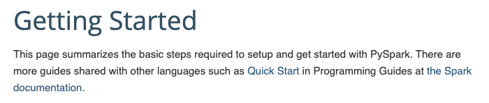 | This page summarizes the basic steps required to setup and get started with PySpark. | ||