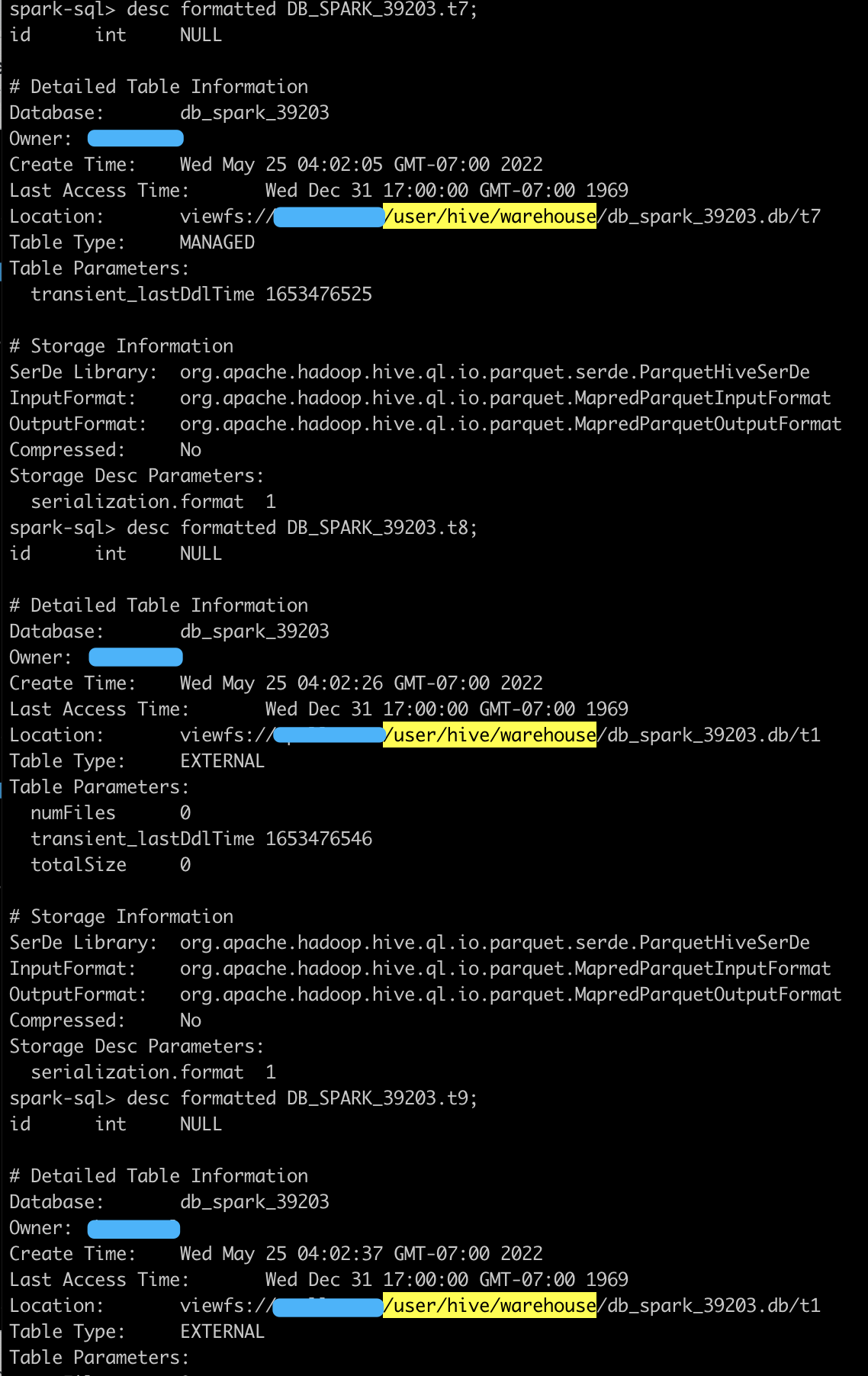 > CREATE TABLE DB_SPARK_39203.t8(id int)
