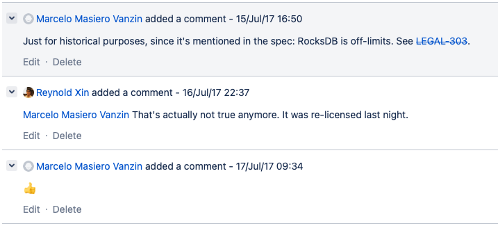 Do you mean that Apache Spark still have legal issue with RocksDB