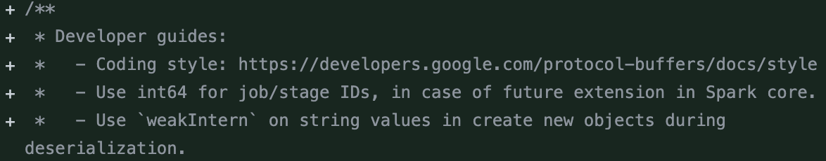| * - Coding style: https://developers.google.com/protocol-buffers/docs/style | ||