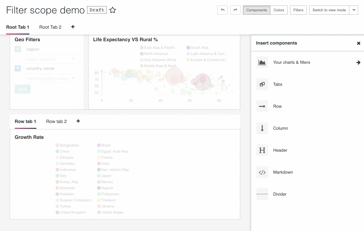 When new chart is added to dashboard, based on its layout position, it will get filters that are applicable to its tab(s):