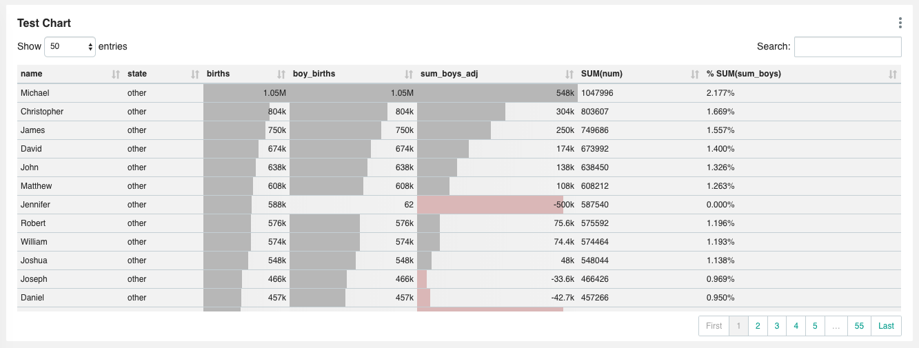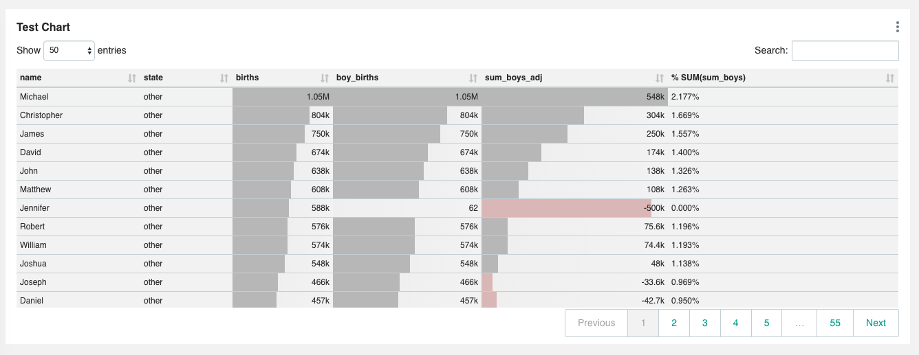 Tested with a ~10,000 rows, 7 columns table in Superset, pagination enabled: