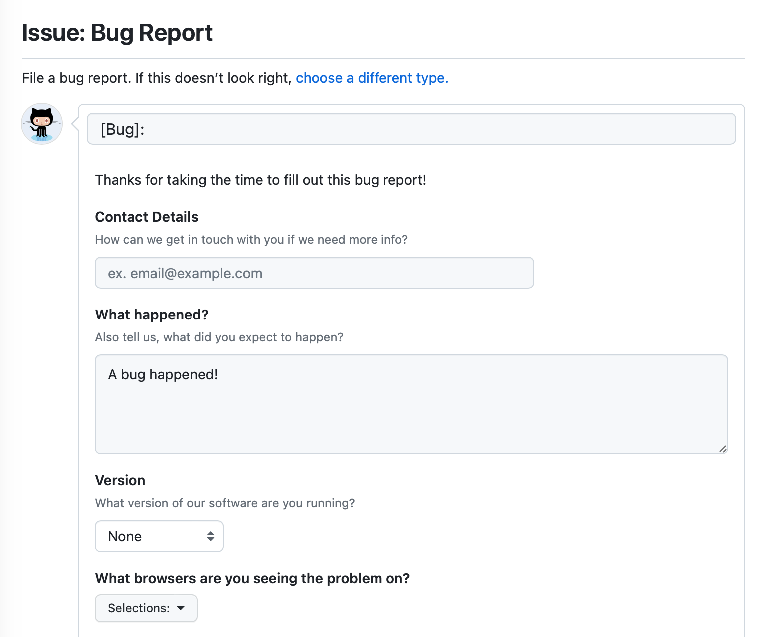 The current bug report template on Github leaves a lot to be desired. Looking at recent issues, many people forego the template altogether and add their own input but this can have the effect of missing critical information.