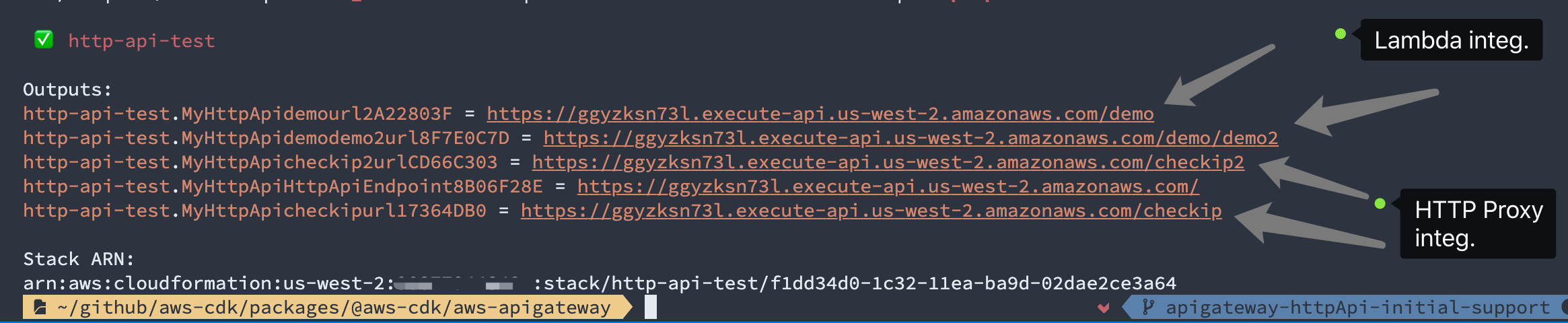 @pahud I'm sorry this wasn't merged but thank you for writing it. Your code helped me to understand the HTTP API better so I could write my own L2 constructs. |