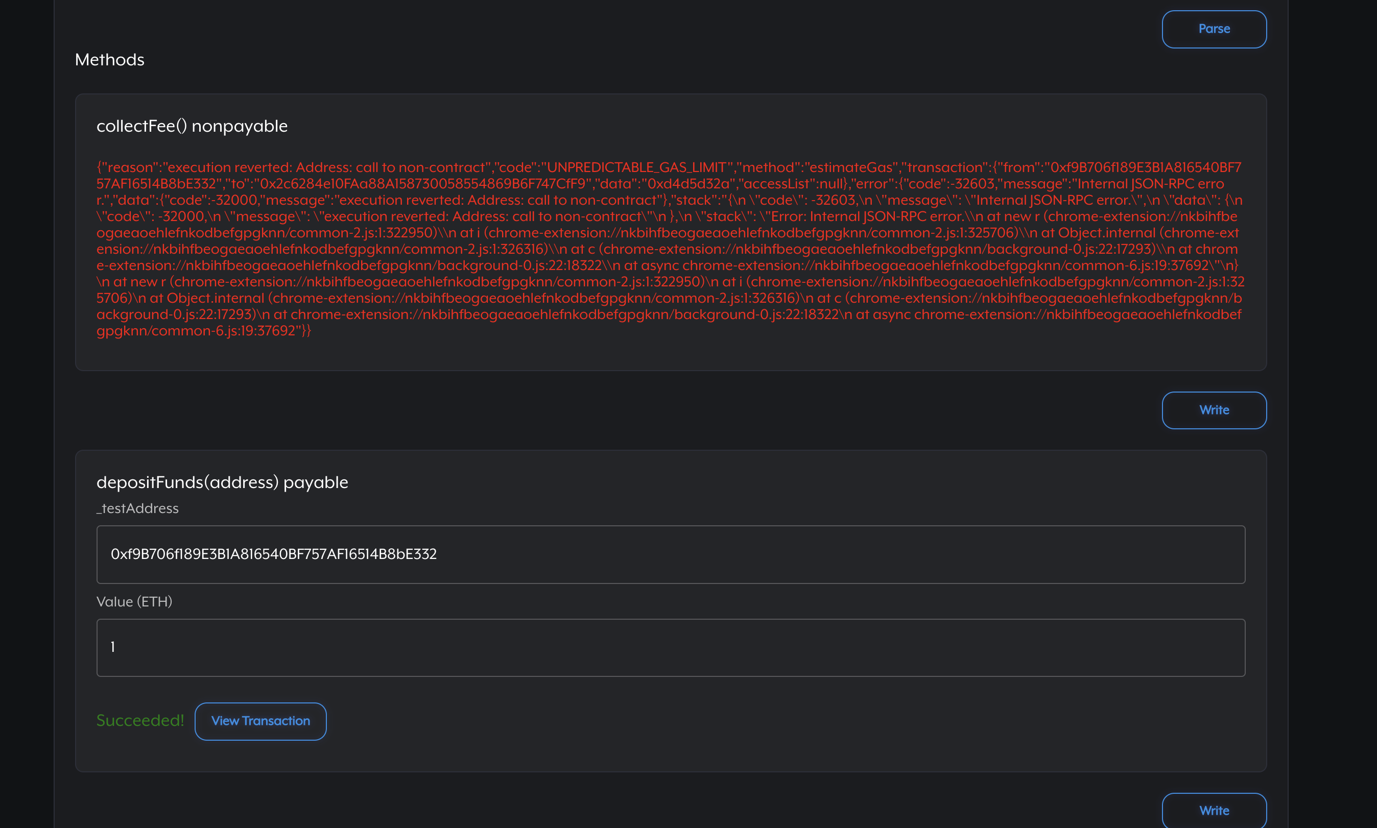 Failure and successful transactions