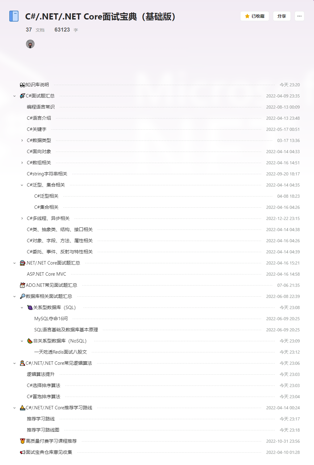 概述:发现现如今网上关于Java、前端、Android、Golang...等相关技术的学习资料,面试指南一搜都是一大把,但是我们大.NET/C#的相关学习资料,面试指南和一些常见的面试题都是寥寥无几,并不是没有人写,而是因为网上的资料和文章太零散了,缺少一个汇总的知识库。因此作为.NET开发中的一员当然是不想让这种现象普遍存在啦,建立这个知识库的初衷就是为了收集、汇总、总结网上优秀的.NET相关学习资料和常见的面试题以及自己在学习和工作中的一些微薄的见解供大家参考学习,并且还会有一些面试时需要注意的事项供大家参考。同时由衷的希望大家可以在Issues中投稿或者直接提交PR一起完善我们.NET学习、工作、面试指南知识库。