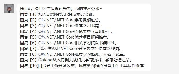 🤝欢迎关注我一起沟通、交流学习、共同进步(💯关注后回复【1】加入DotNetGuide技术交流微信群,回复其他关键字获取更多.NET相关学习资料)。