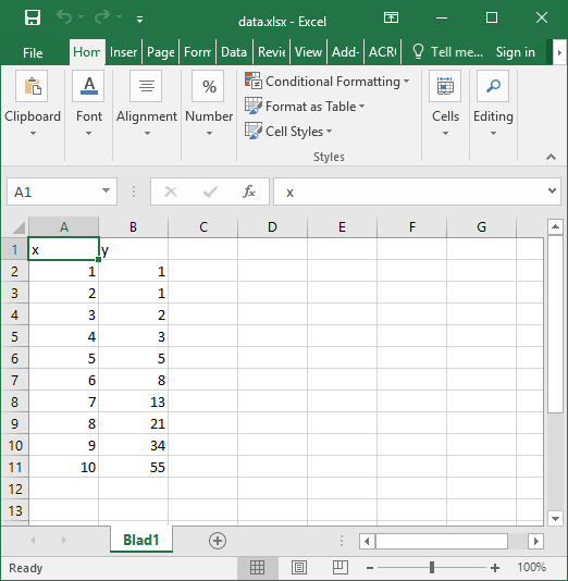 y = x**2