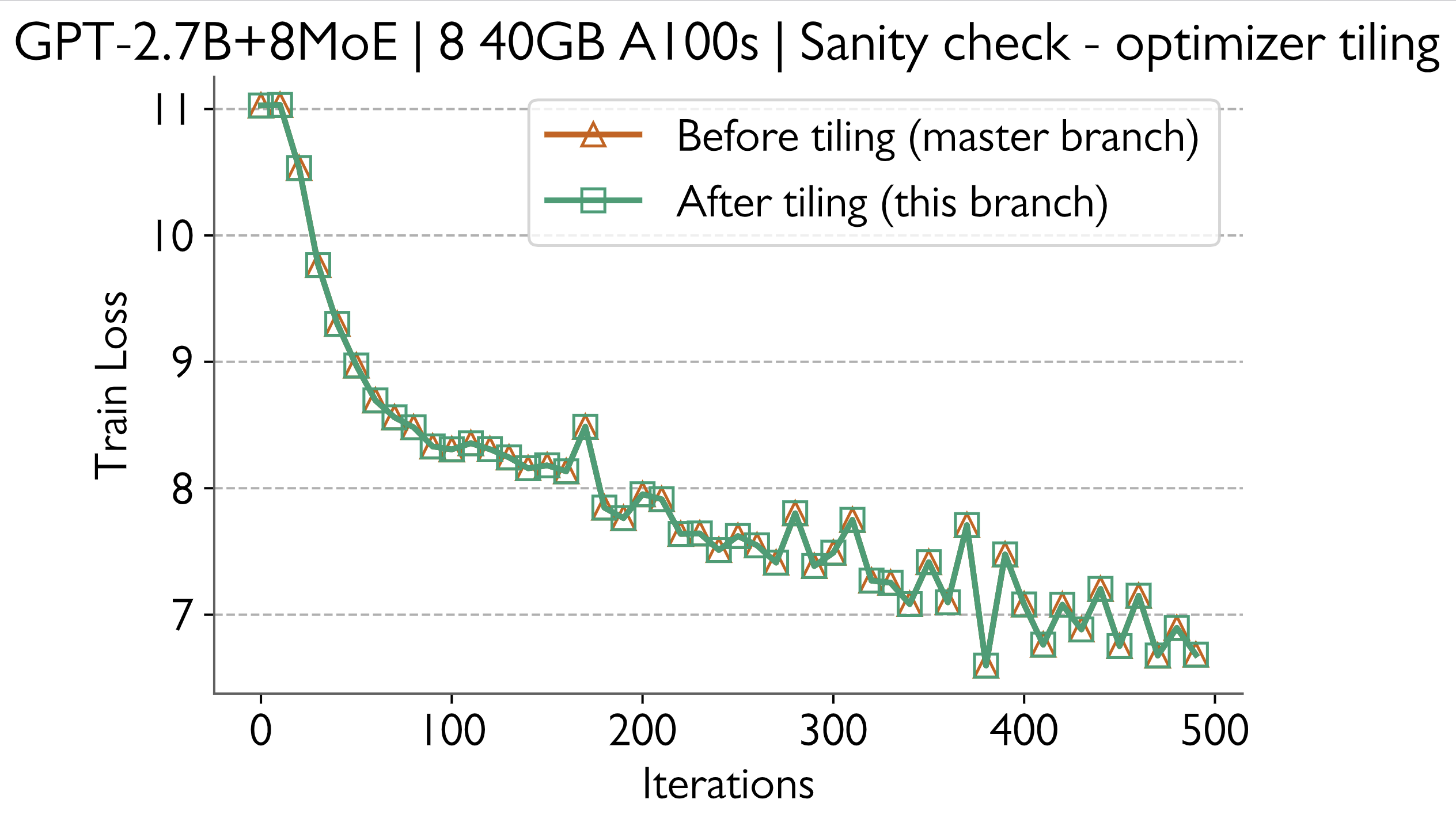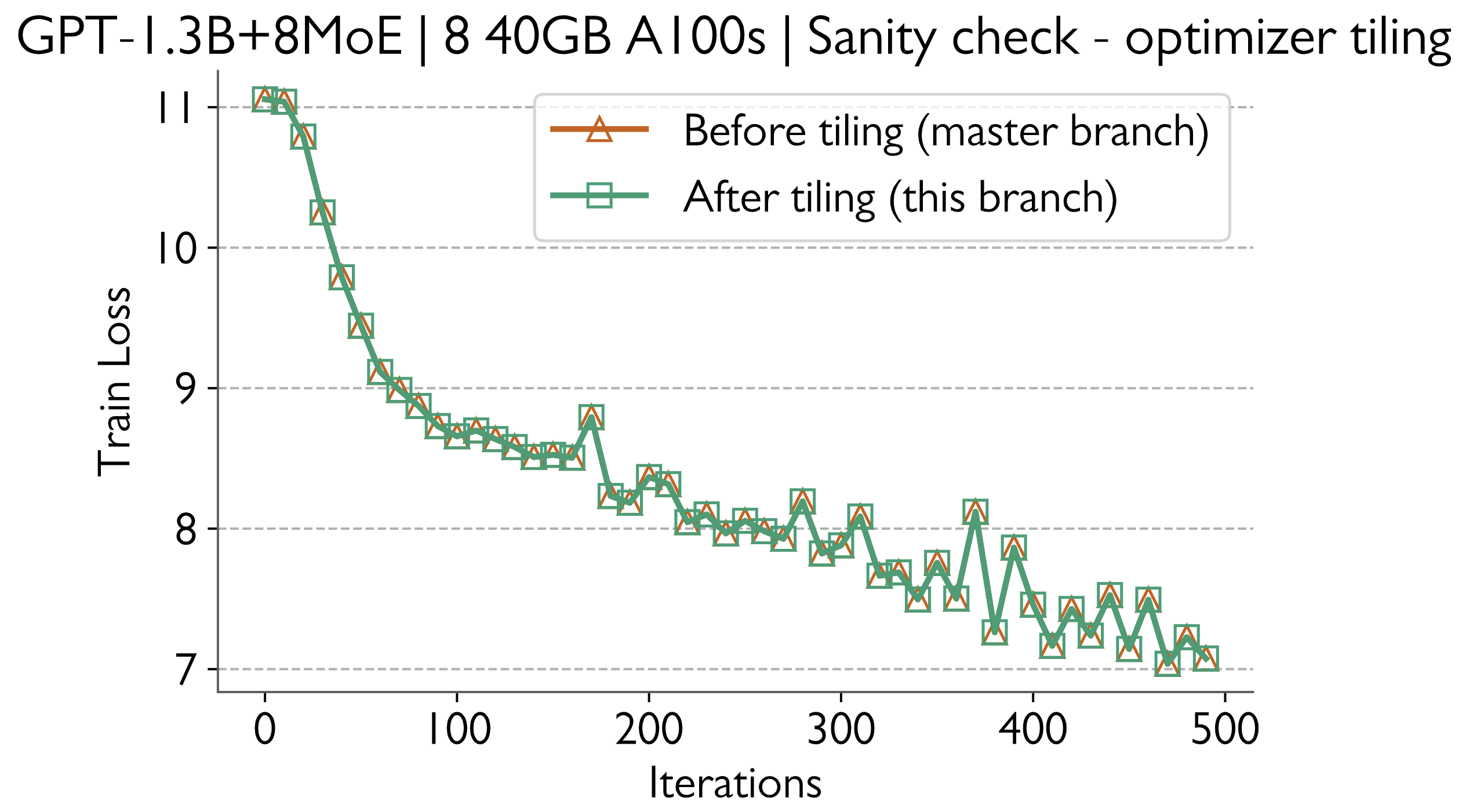 Train loss curves before and after the changes match