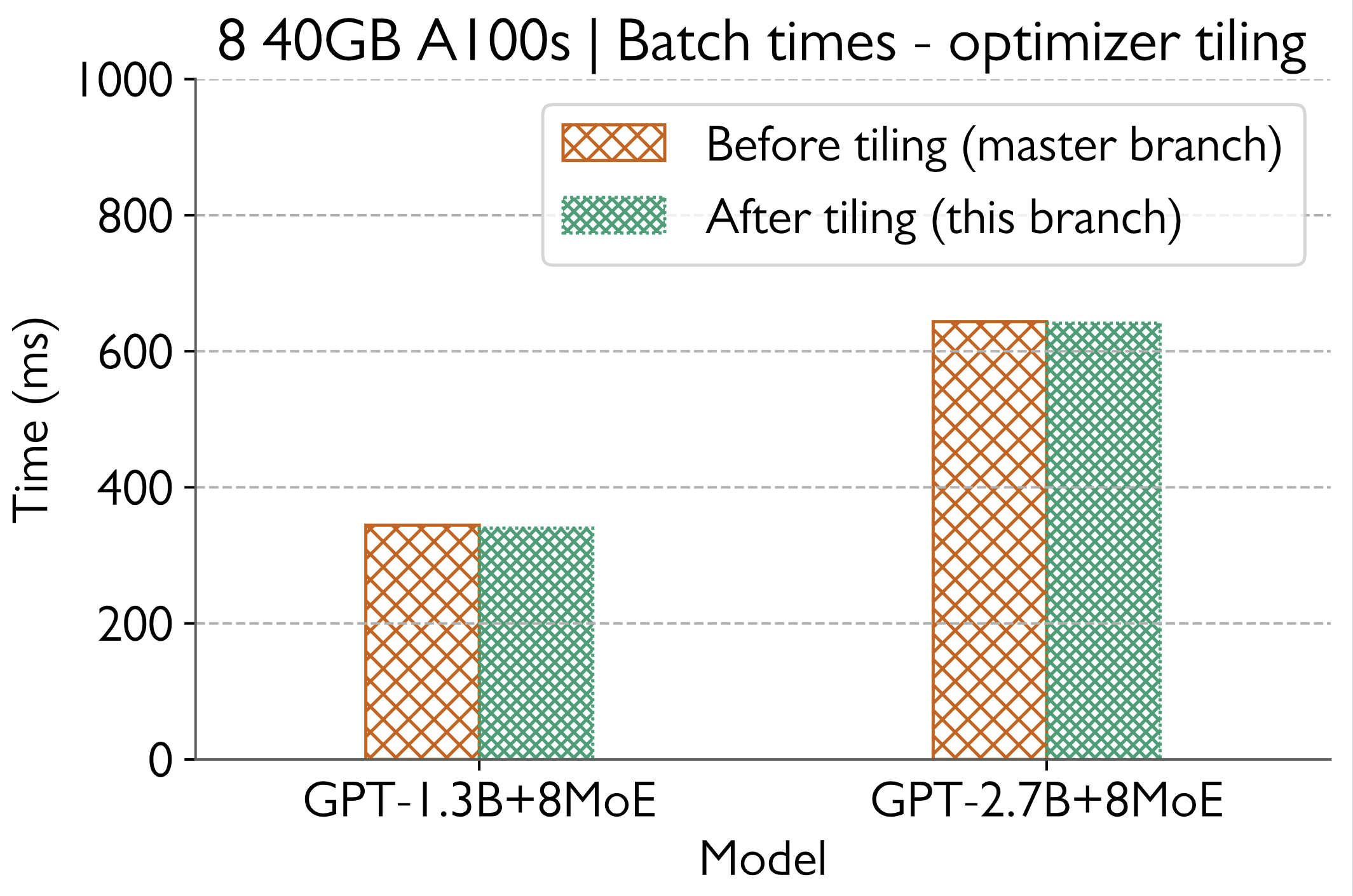 To create the most pathological case, I set global batch size to 8. Yet, there is no penalty in batch times.