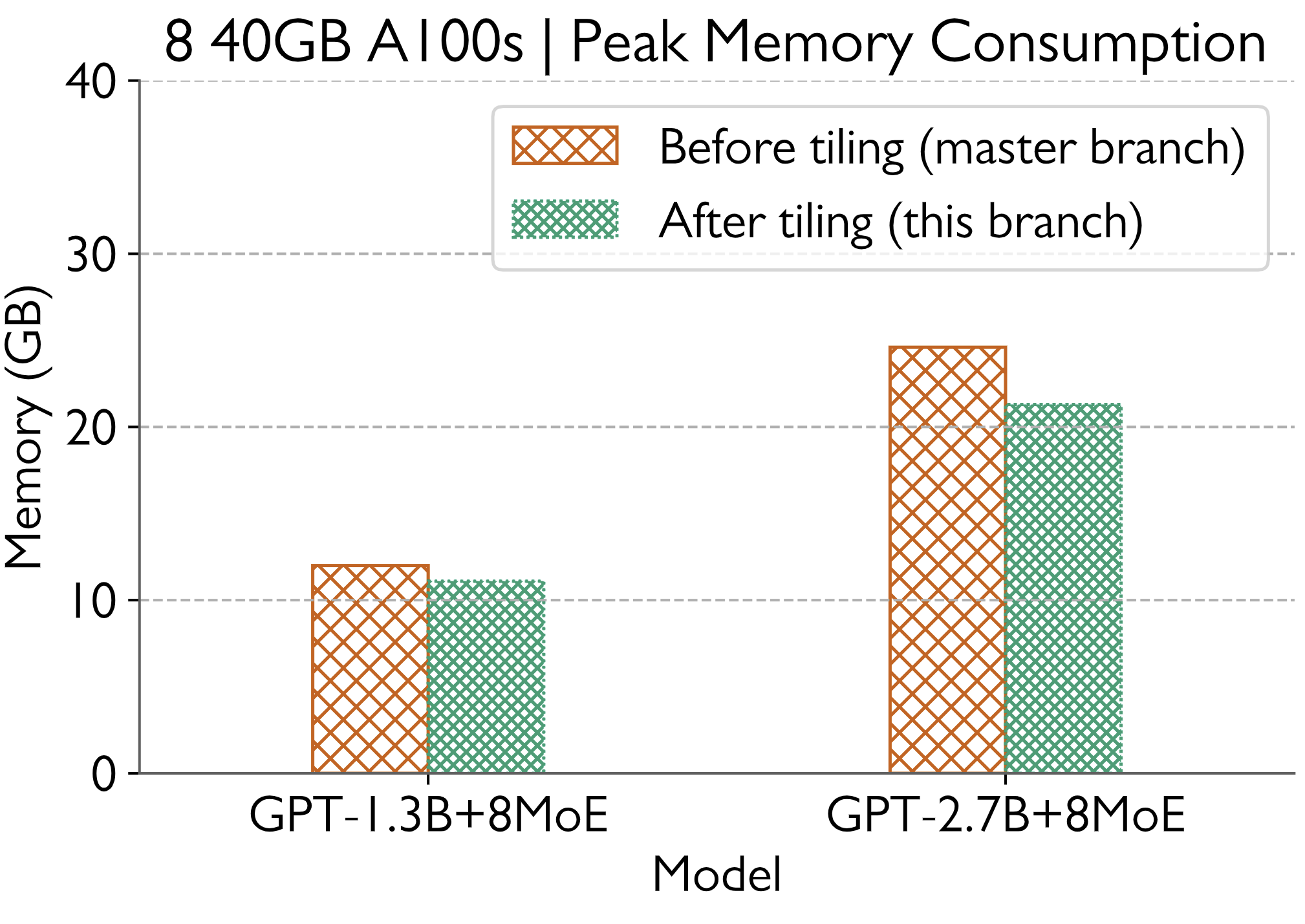 With the changes, I am able to run the same model with a peak memory utilization of 31.3 GB. Thus at the bare minimum we are saving 21.75% memory for this model.
