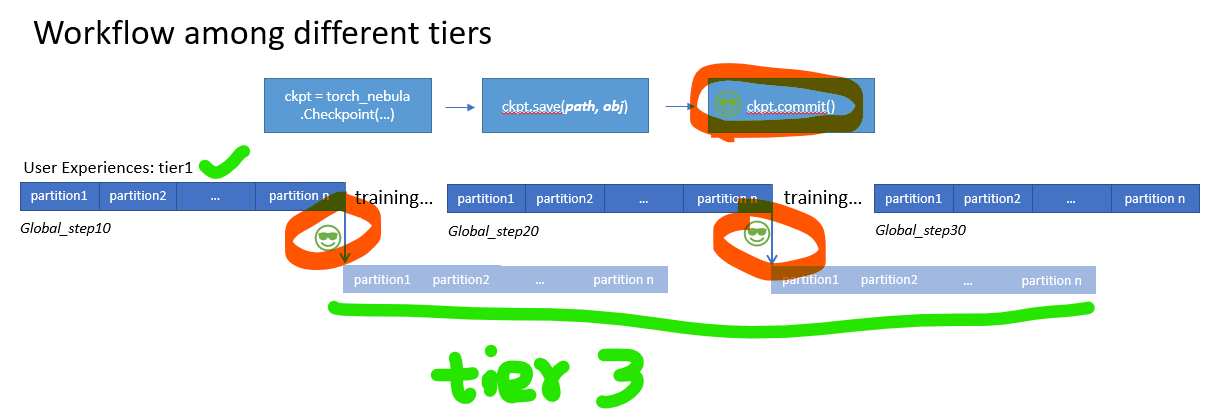 torch.save()as it is not writing a checkpoint state to disk but rather writing a metadata file for managing checkpoints. So, I am not sure how it is similar to commit which signals the start of persistent processing.However, this two-step persistence process of nebula is different from torch since checkpoint is persisted by the time