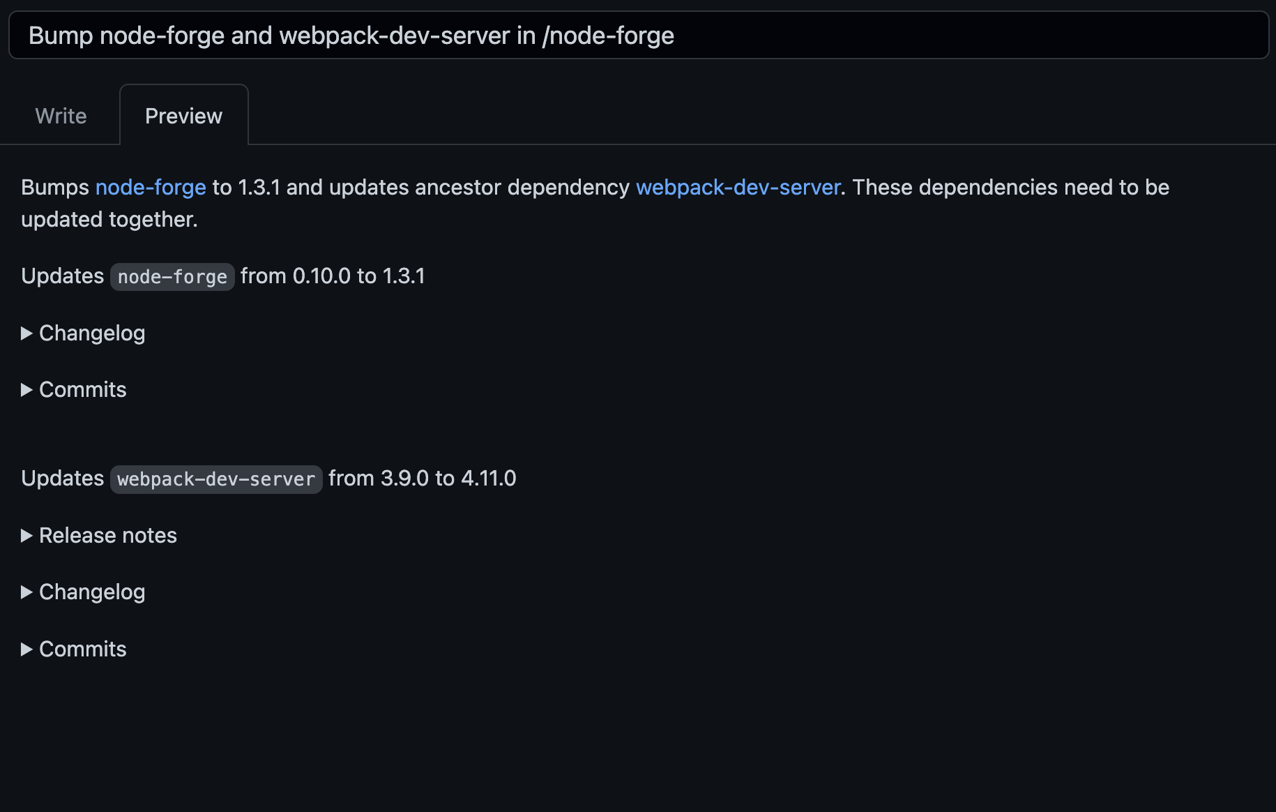 However, when Dependabot recreated the PR, it didn't reset the commit title or description. It merely reset the code changes of the commit.
