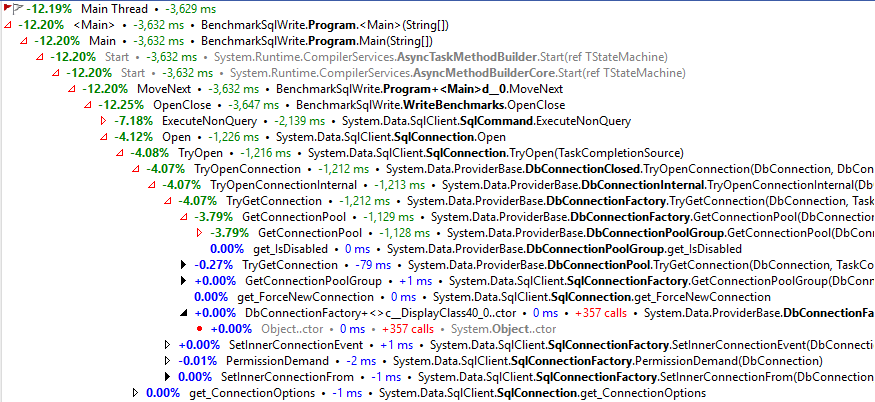 When using trusted authentication with connection pooling profiling has shown that getting the connection from the pool and getting the security information from the unmanaged library are hot paths.