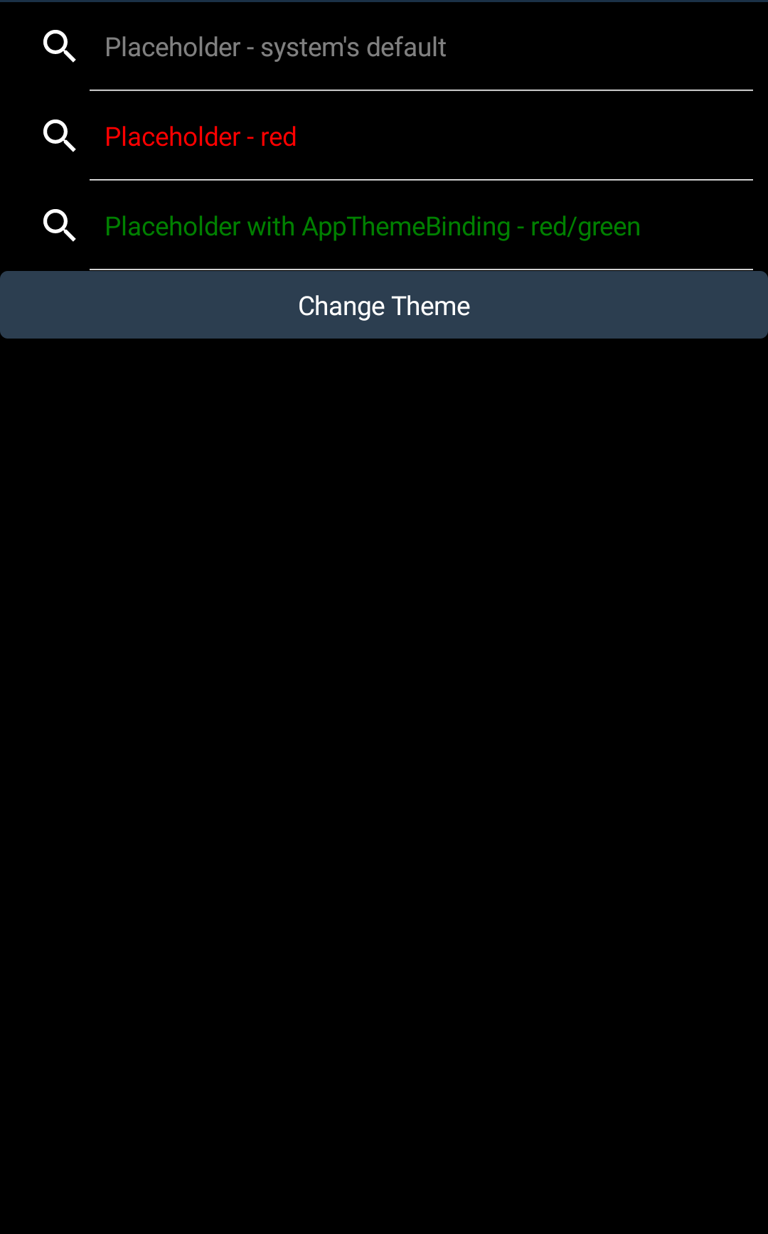 Test Coverage Assessment✅ Adequate: The PR correctly updates existing visual tests rather than adding new ones. The existing test suite already covers theme switching scenarios (e.g., From PR review discussion: PR author confirmed "There are already lots of tests for the search bar theming" and provided visual proof that the underline now updates correctly after theme changes. TestingManual Testing (Not Performed)Decision: Given the comprehensive existing test coverage and clear code logic, manual testing in Sandbox app was deemed unnecessary for this review. The PR: