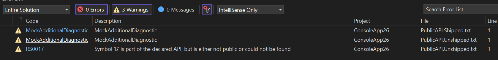 | // including those reported as a compilation end diagnostic. These are not included in document pull (uses GetDiagnosticsForSpan) due to cost. | ||