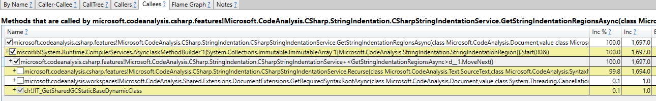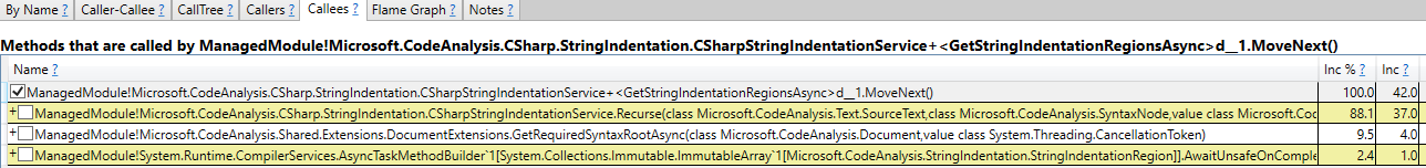 This reduces samples under GetStringIndentationRegionsAsync from 2.9% to 0.1%.