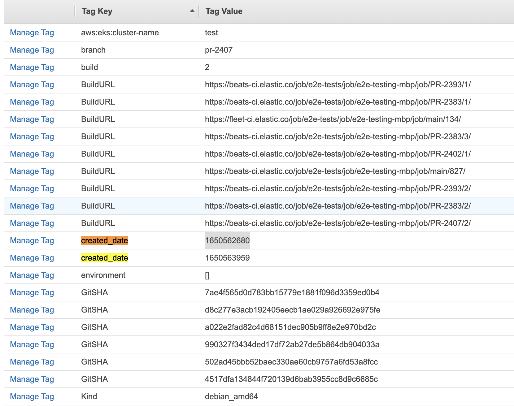 environment=ciwill allow to filter all those cloud resources which were created in the CIcreated_datewill help to filter those which were older than X days or X hours, since it's Unix epoch time based.branchandbuildwill help to identify what build in the CI and what PR, Branch or Tag created those resources.Further details