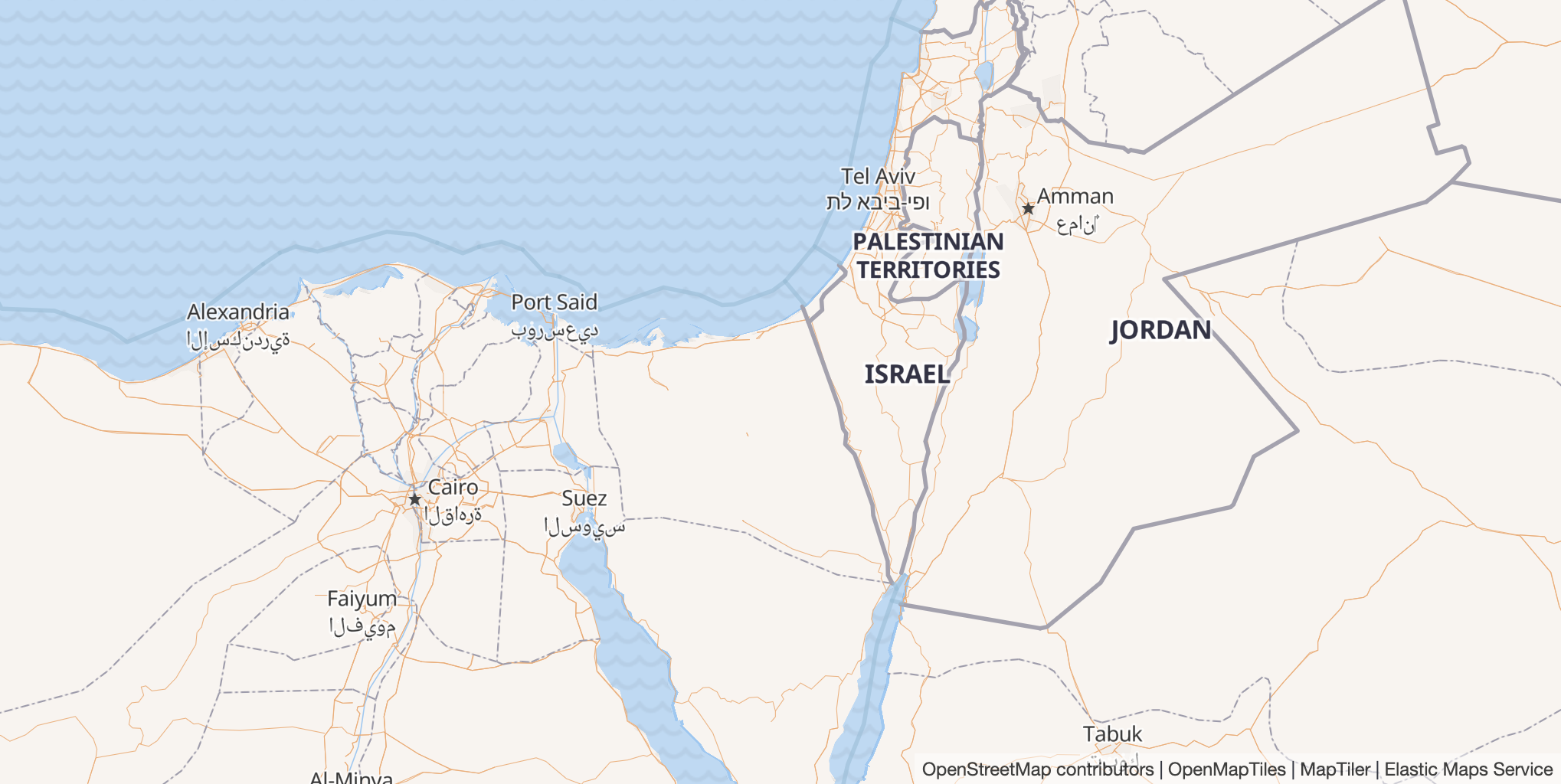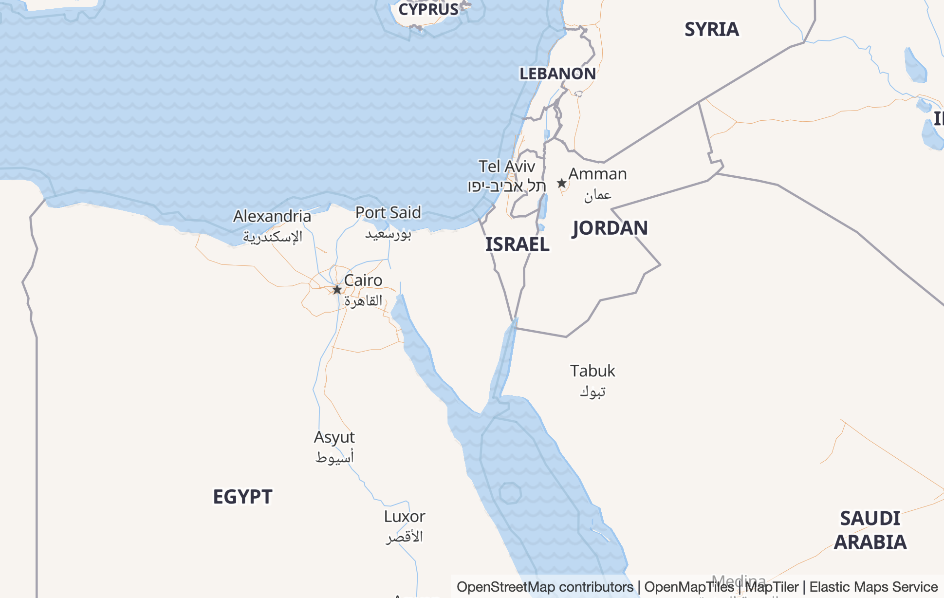 For example, note the respective Arabic and Hebrew labels for Cairo and Tel Aviv in the screenshots below.