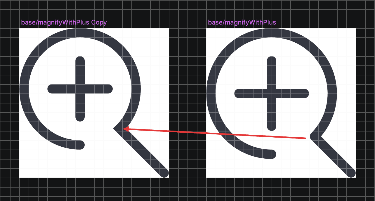 Yeah, I'd opt for making sure they're aligned to the pixel grid. I think ensuring readability (less fuzziness) for those without retina displays is more important than trying to match sizing with other semi-related icons. I can't imagine when the normal magnify would be used in conjunction with these. If we do see that case, we can revisit. |