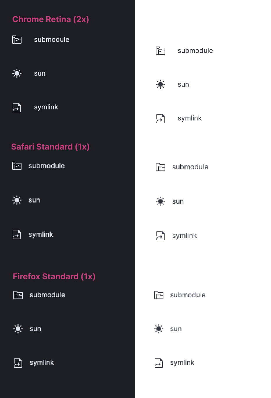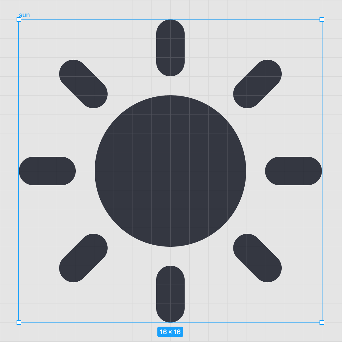suncould have 1px to fit the grid. But this would make the icon not being centered and look smaller when compared with themoon. So I ended up with rays of 1.5px.In case there's an animation to toggle from a