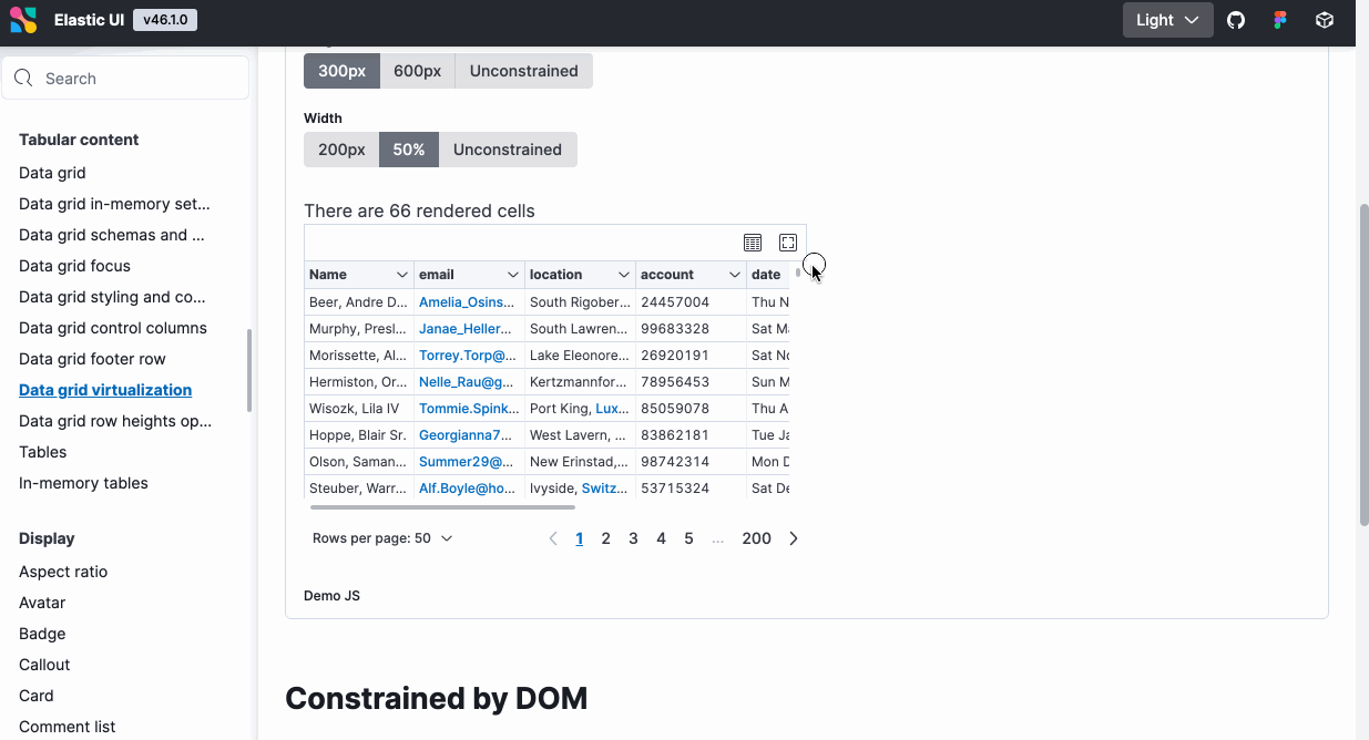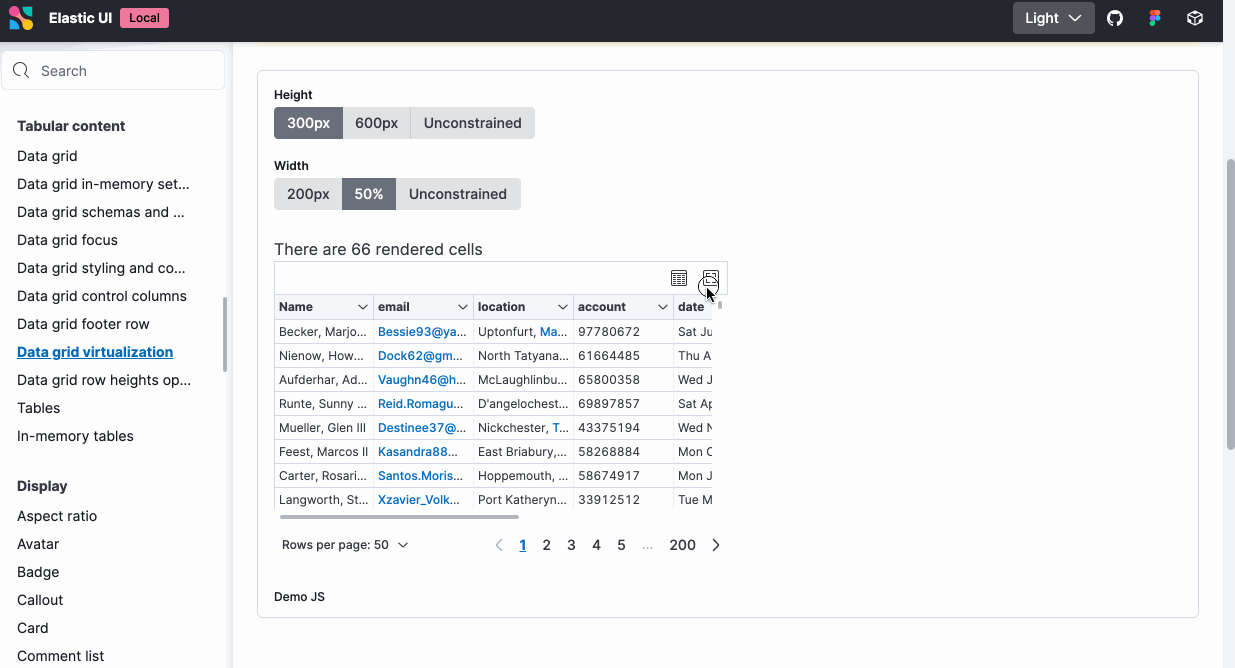 - There's no need for a separate isFullScreen branch in this logic: EuiDataGrid's wrapper will update its dimensions on full screen toggle, and react-window should simply use that wrapper's height & width, the same way it does in non-full-screen mode