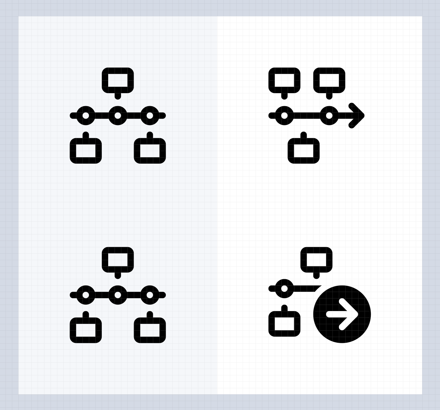 Hey all, I explored a few options and have come back with this arrow-in-circle approach, below. I feel this - especially at smaller sizes - will better differentiate the two timeline icons. This filled circle inset is also an existing pattern we have used elsewhere within other familial sets of icons. Let me know what you think and I can update this PR. |