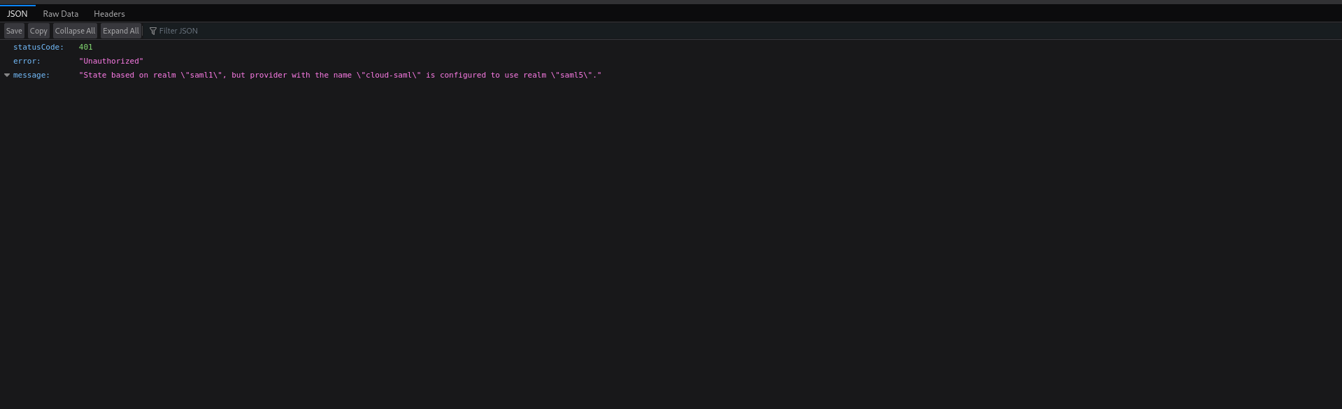 Here is example where user ends up with if SAMLResponse is rejected because of unknown realm: